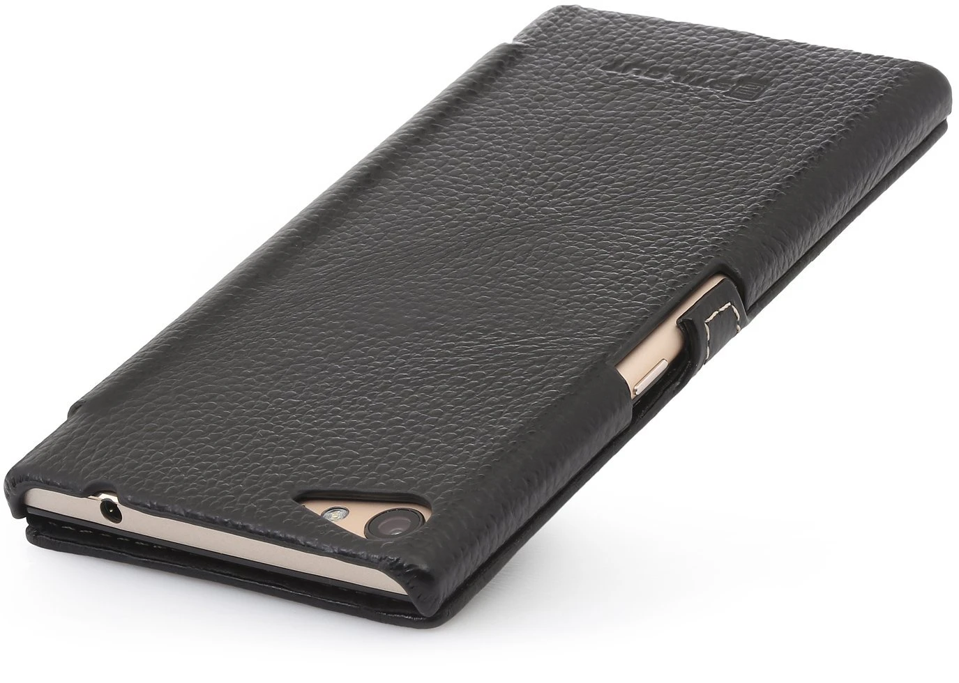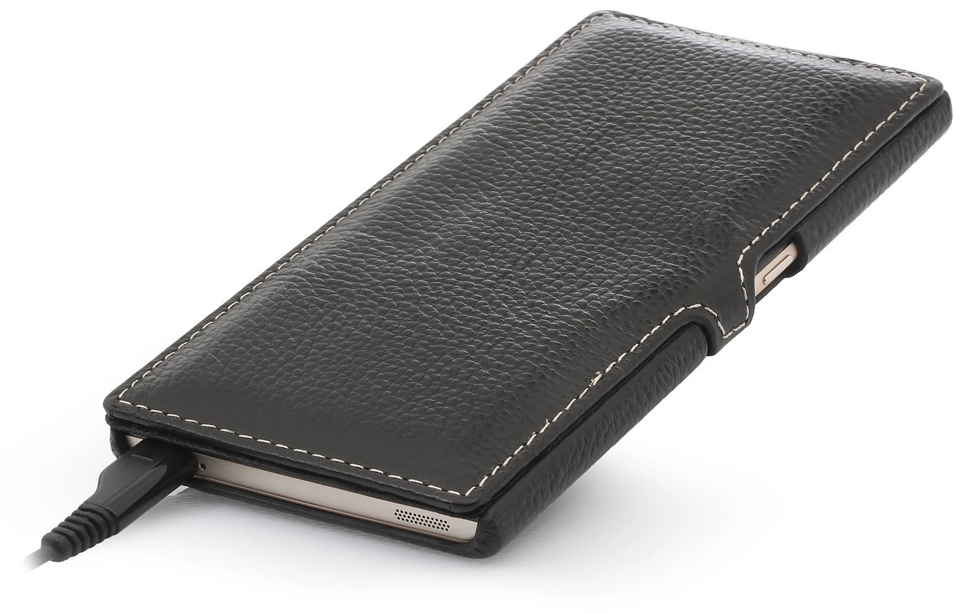 Kopfhörer können auch mit geschlossener Ledertasche angeschlossen werden