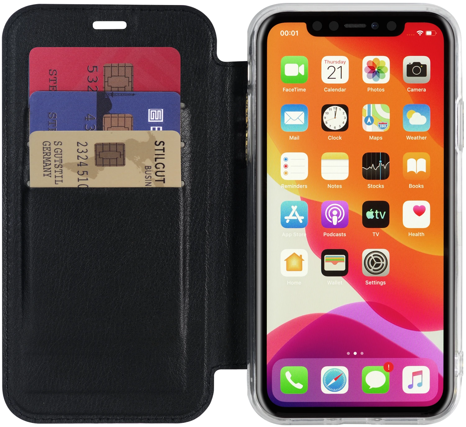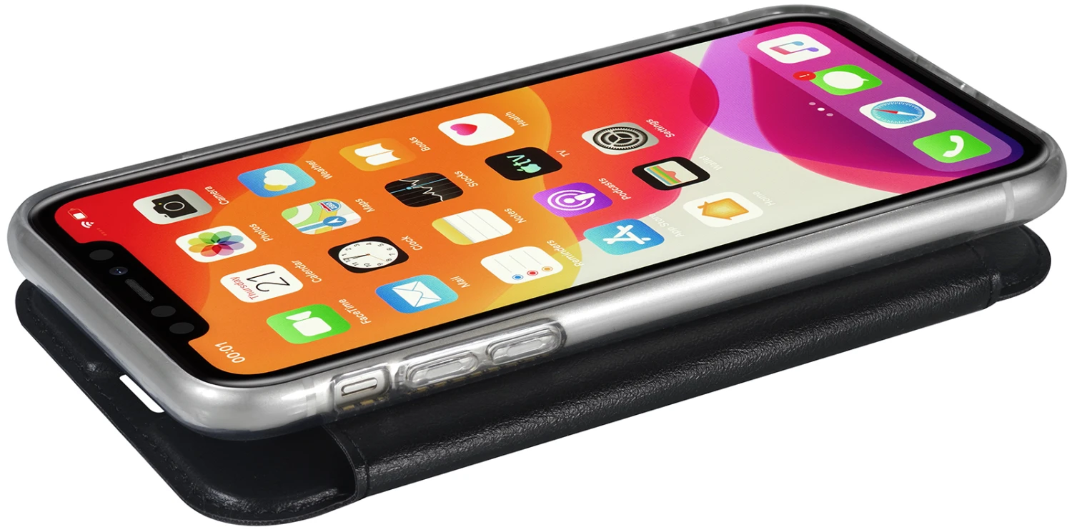 iPhone 11 NFC/RFID Blocking Hülle mit 3 Kartenfächern aus Nappaleder & Kunststoff (TPU)