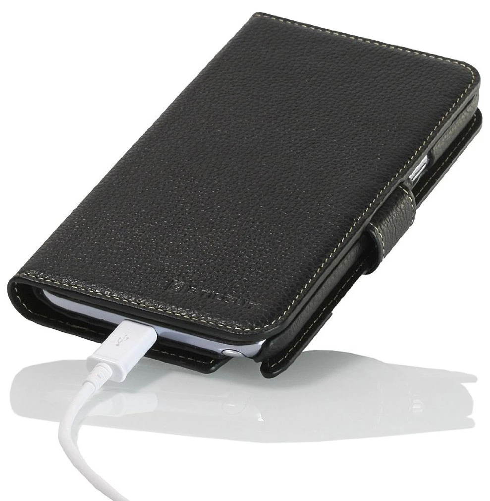Tasche / Case für das Galaxy Note 2 aus echtem Leder zum Schutz und zur Verwendung als Brieftasche